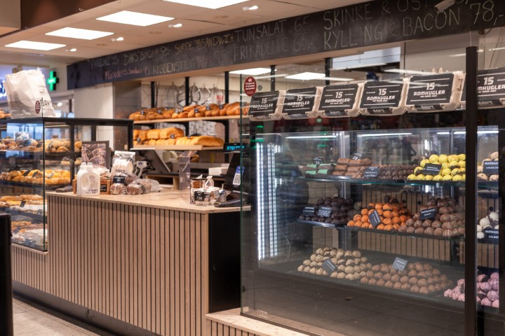 HVEDEMEL, melbehandlingsmiddel: askorbinsyre, Veg. margarine (planteolier og fedt (palme, raps), vand, salt, citronsyre, aroma, PAST. ÆG, sukker, VALLEPULVER, majsstivelse, MANDELMEL, salt m. jod, NOUGAT(sukker, vegetabilsk olie(solsikke,palme), HASSELNØDDER, kakaopulver, modificeret stivelse, skummetmælkspulver, Bailey, Kokosrom, romkoncentrat (aromastoffer, naturlige aromastoffer, vand, jamaica rom, 0,4% alkohol, Natriumcarboxymethylcellulose og 0,1% ammonieret karamel, kakaopulver, farve: beta-caroten., gær, FLØDE , lys chokolade, SØDMÆLKSPULVER, SKUMMETMÆLKSPULVER, HASSELNØD koncentrat, Vanilje ekstrakt, Cacaosmør, kaffe 2%, chokoladekrymmel (sukker, fedtreduceret kakaopulver, vegetabilsk fedt, dextrose, glukose sirup, emulgator SOJA Lichithin, koldcreme (sukker, modificeret stivelse, VALLE pulver, vegetabilske olie (kokos), fortykningsmiddel: E450, E399, Calciumsulfat, gelleringsmiddel: Natriumalginat, farve: Beta caroten, salt, surhedsregulerende middel: Citronsyre, emulgator (solsikke lecitin, mono- og diglyceriders af fedtsyre, poly glycerolestere af fedtsyre), Kaliumsorbat, surhedsregulerende middel Kaliumcarbonat.