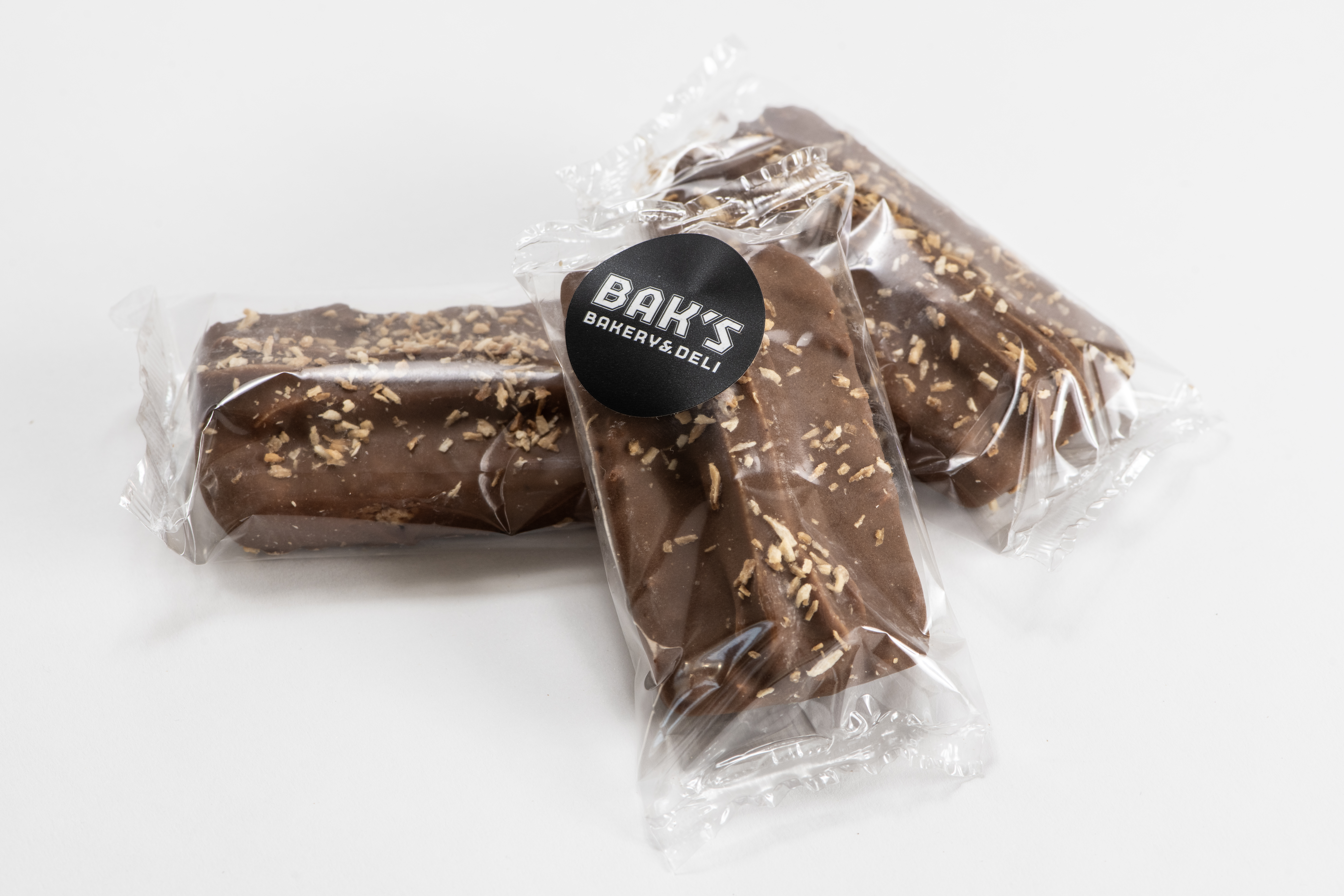 Kokosbund med hvid chokolade ganache. Overtrukket med flødechokolade.