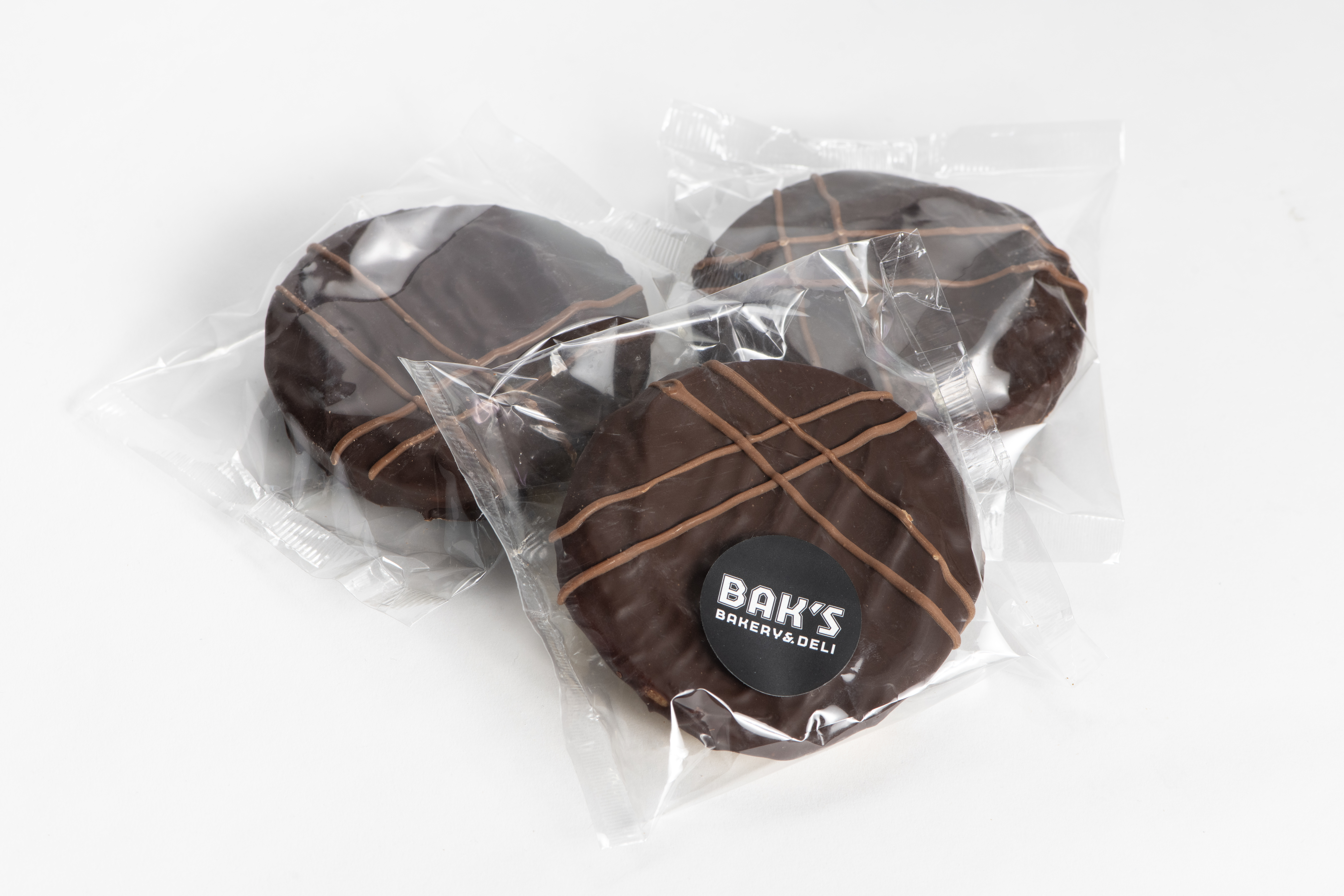 Mazarin tærte med nougatfyld og overtrukket med couverture chokolade.
