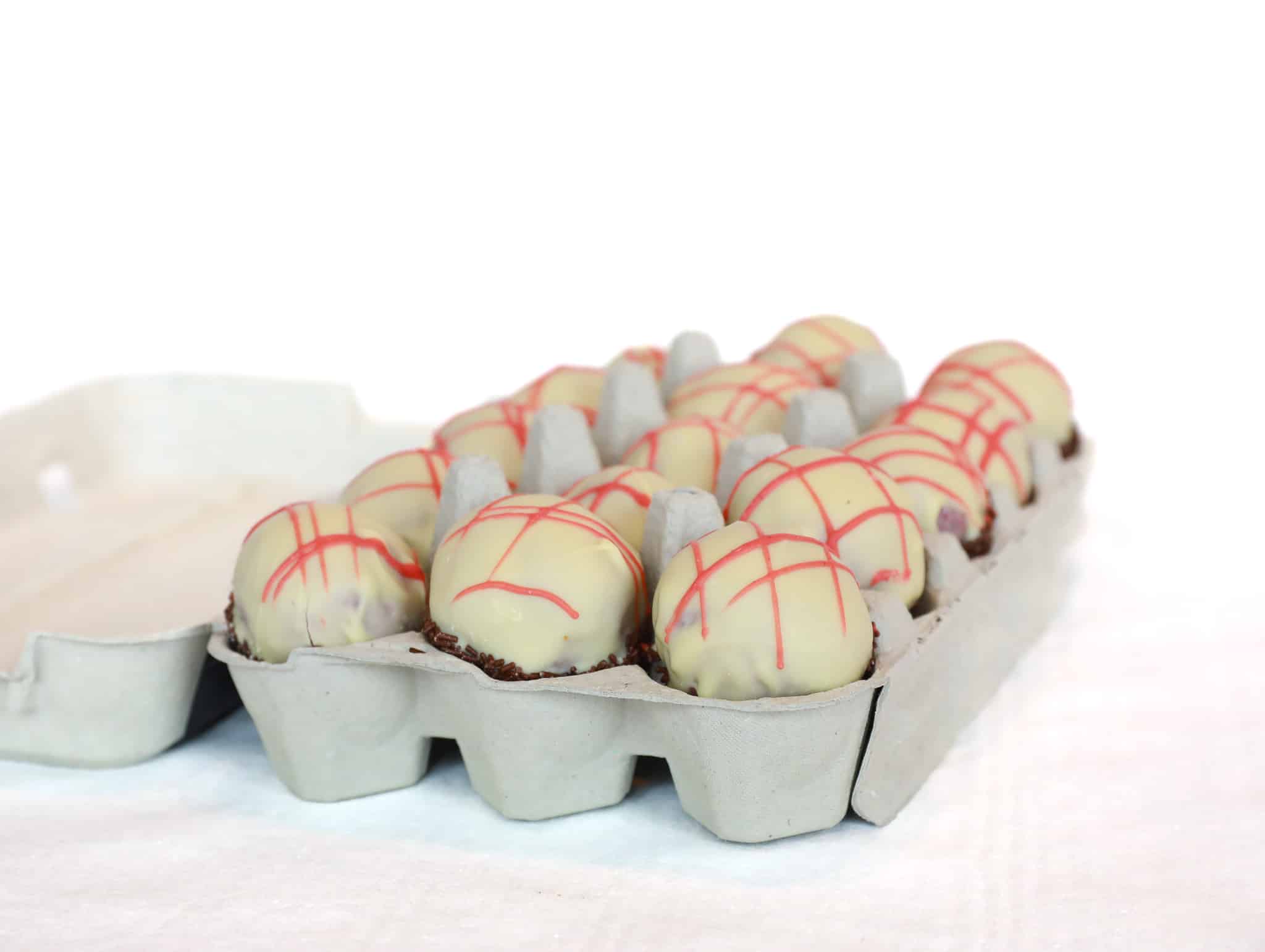 Prisvindende romkugle med fyld af solbær marmelade og solbærrom med en kerne af hvid ganache.