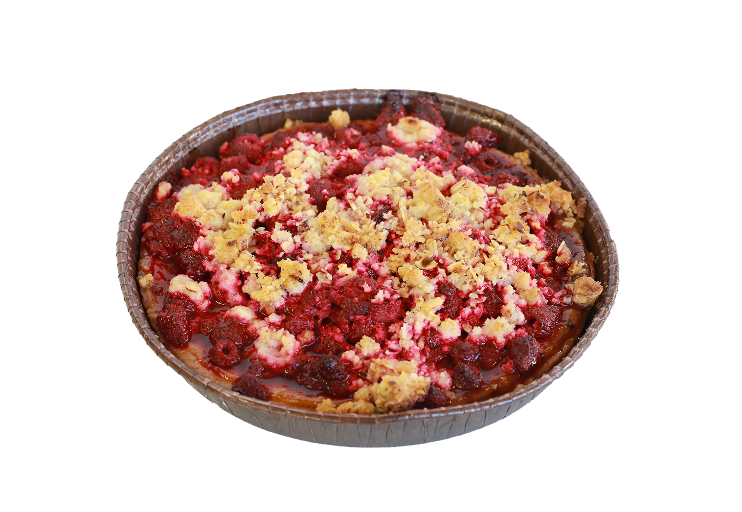 Hindbærtærte, toppet med crumble. perfekt med en klat creme fraiche
